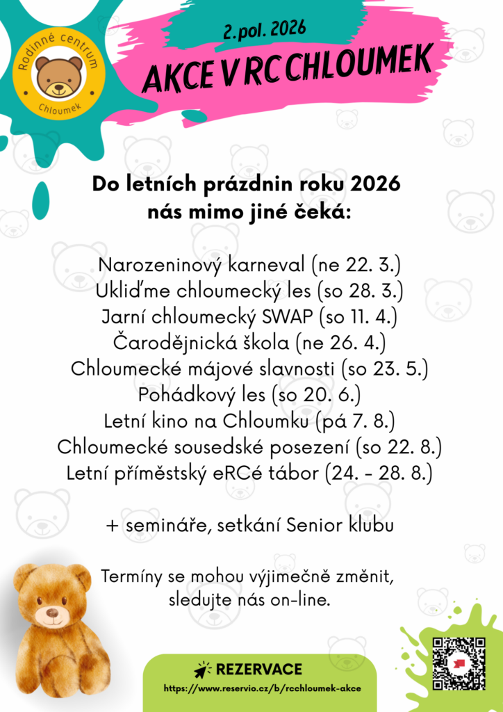 Čekají nás akce, kde si děti pohrají, dospělí si oddechnou a všichni dohromady si užijeme tu naší chloumeckou pohodu.